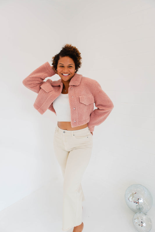 Dusty Rose Faux Fur Sheared Crop Jacket