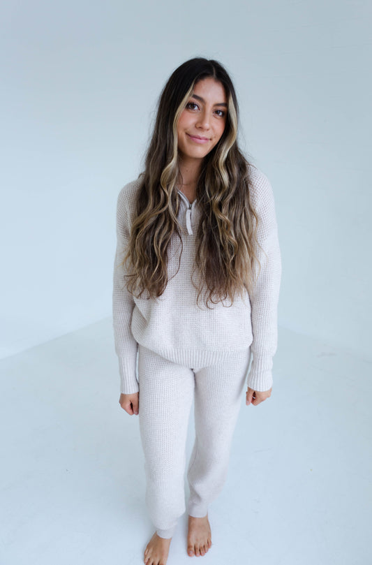 Oatmeal Waffle Sweater Jogger and Half Zip Sweater Set
