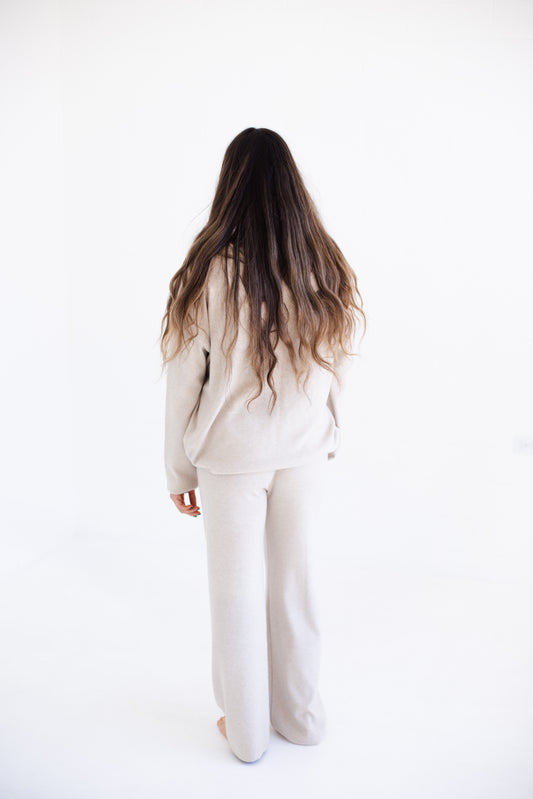 Oatmeal Waffle Sweater Jogger and Half Zip Sweater Set