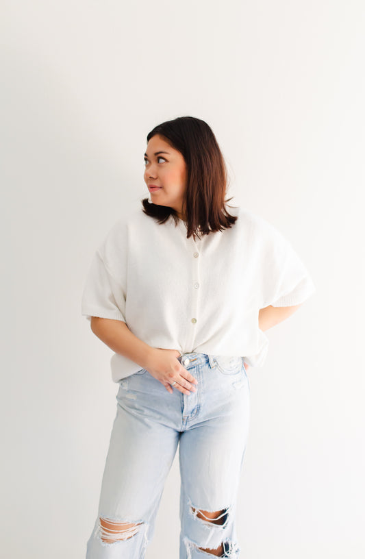 Cream Peter Pan Collared Button-up Sweater Cardigan