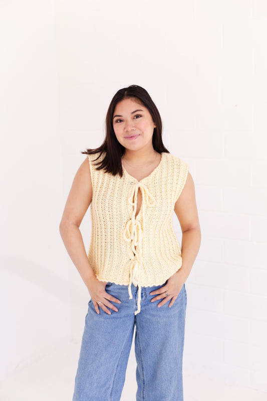 Yellow Round Neck Front Tie Chunky Sweater Vest