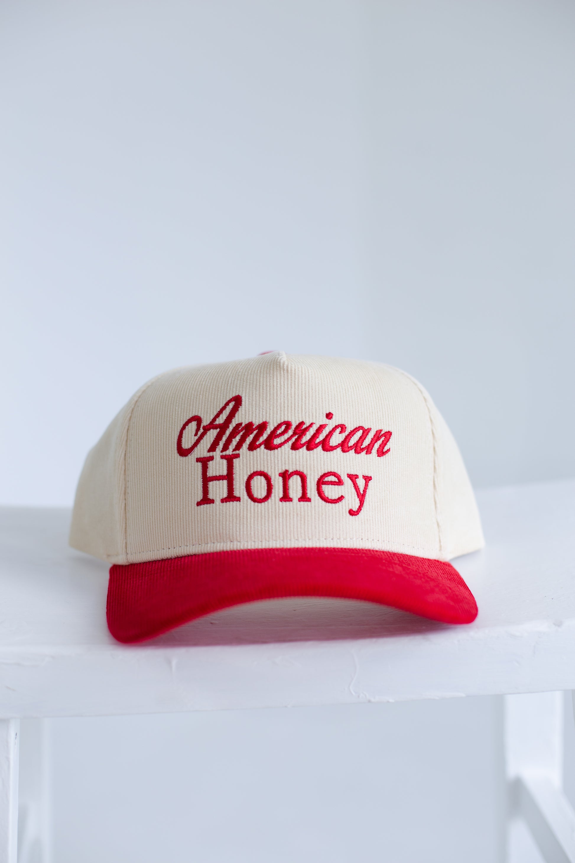 This American Honey Ball Cap boasts a cozy and stylish corduroy material, perfect for any outdoor occasion. With a snap back closure, this cap offers a customizable fit. Ideal for keeping the sun out of your eyes while adding a touch of Americana to your wardrobe.