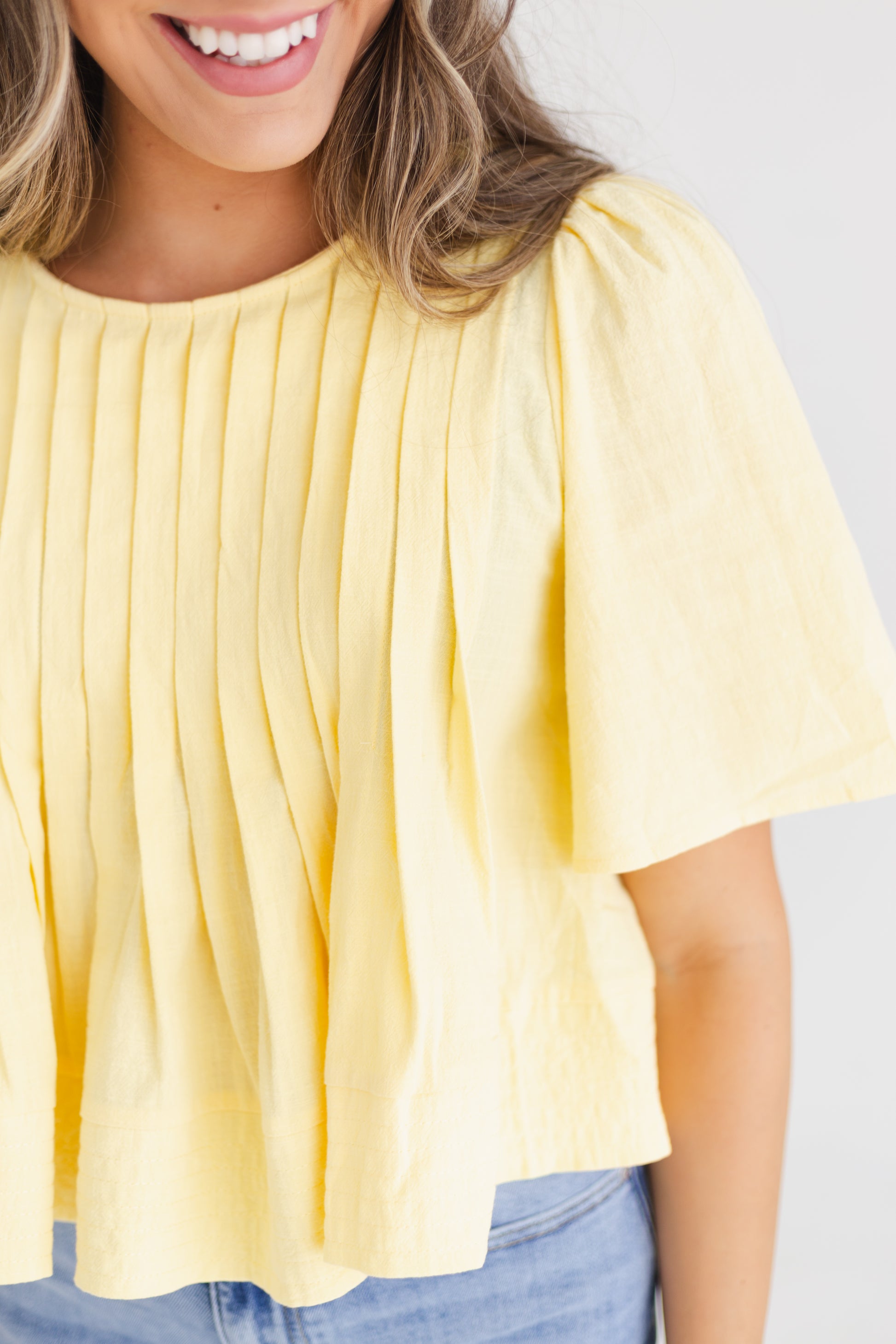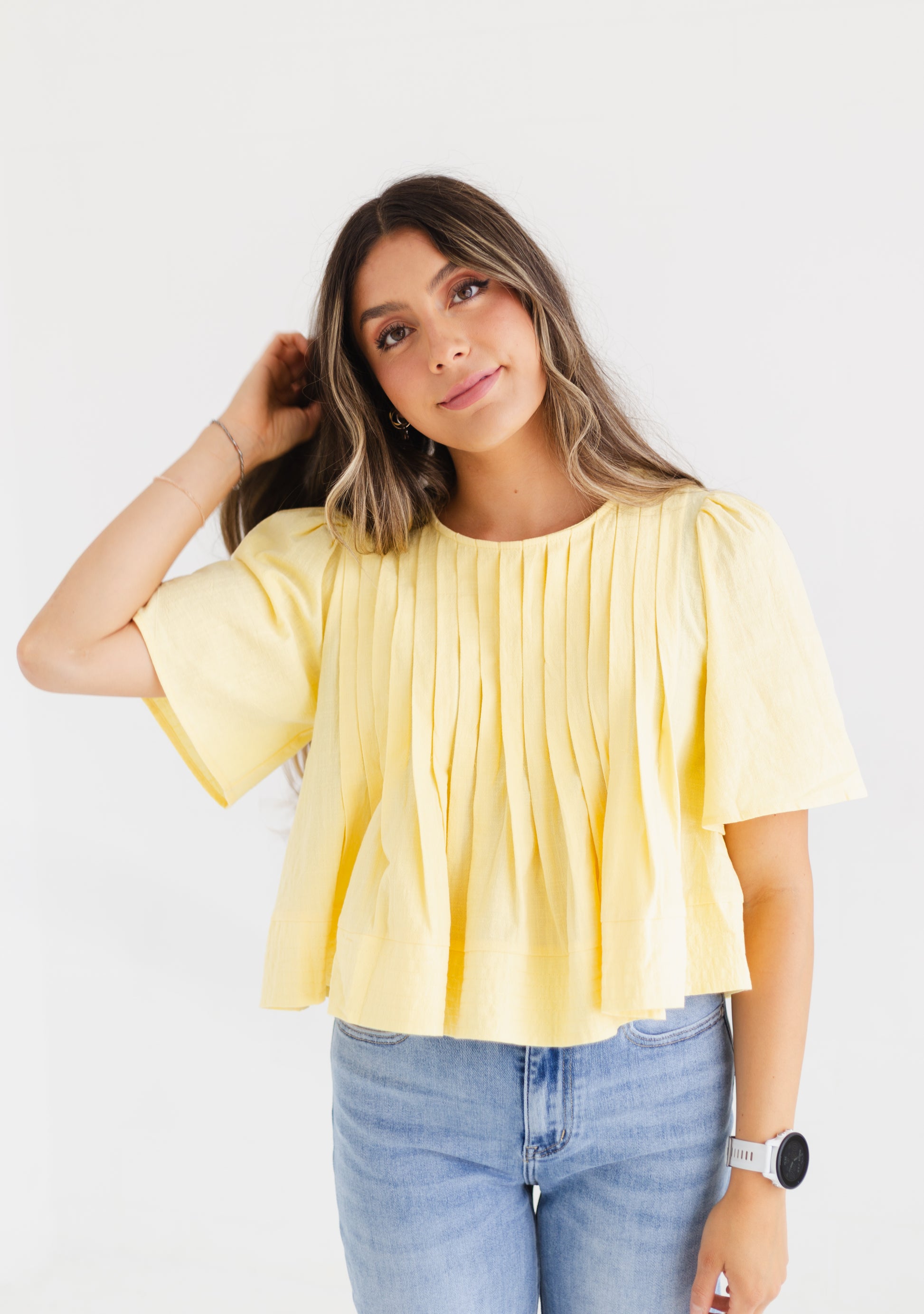 The Butter Flutter Sleeve Pintuck Blouse is your new go-to for effortless style. Featuring delicate pintuck details and flutter sleeves that add a flirty touch, this blouse has a relaxed fit and a sweet round neck. The swing hem flows beautifully, while the back keyhole adds a subtle hint of charm. Perfect for pairing with your favorite jeans or skirts, it’s a fresh, feminine piece you’ll love for everyday wear.