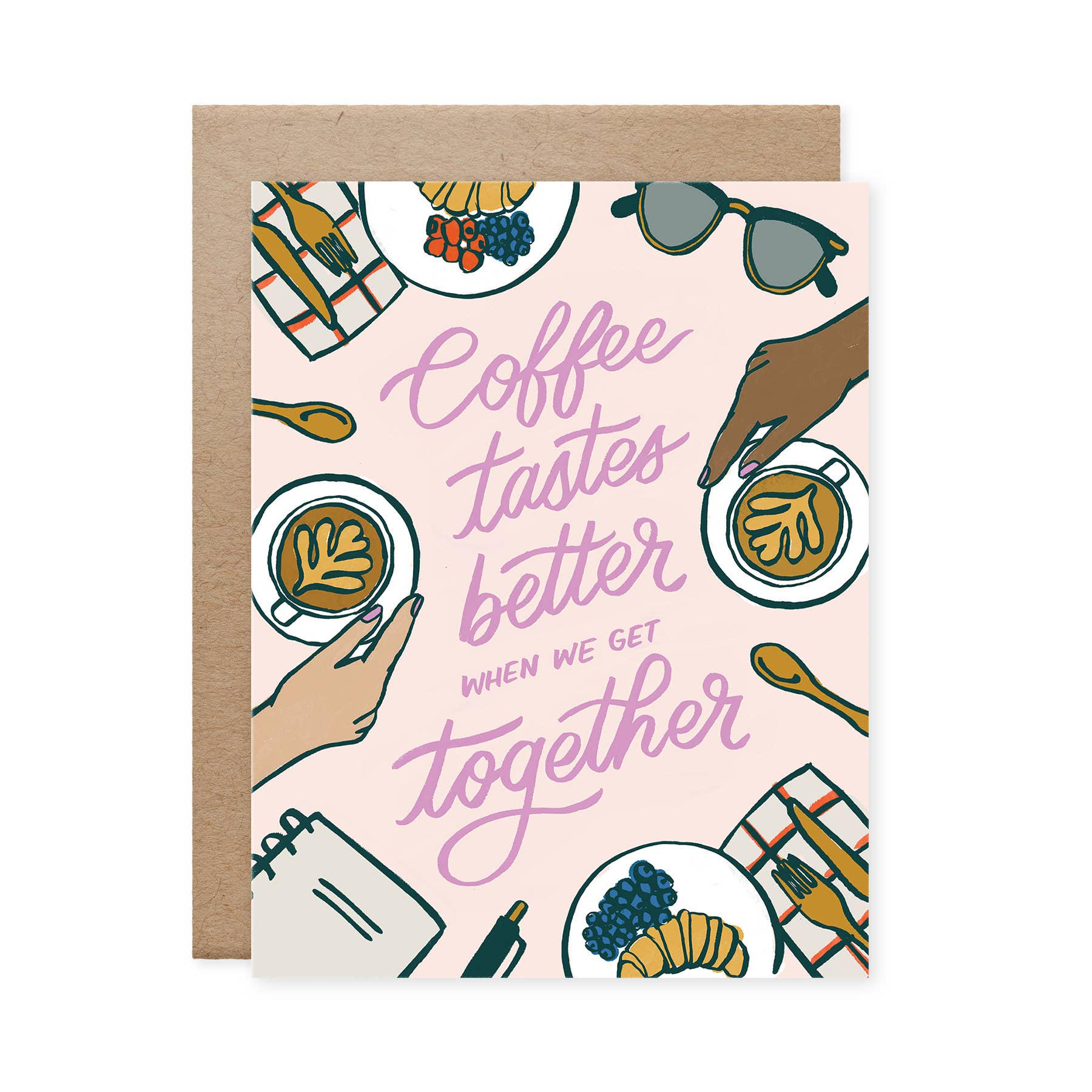 “Coffee tastes better when we get together” This card is perfect for your go-to coffee date friend on Valentine's Day, Galentine's Day, their birthday, and beyond! Details: • kraft envelope • A2 (4.25x5.5inches) • blank inside