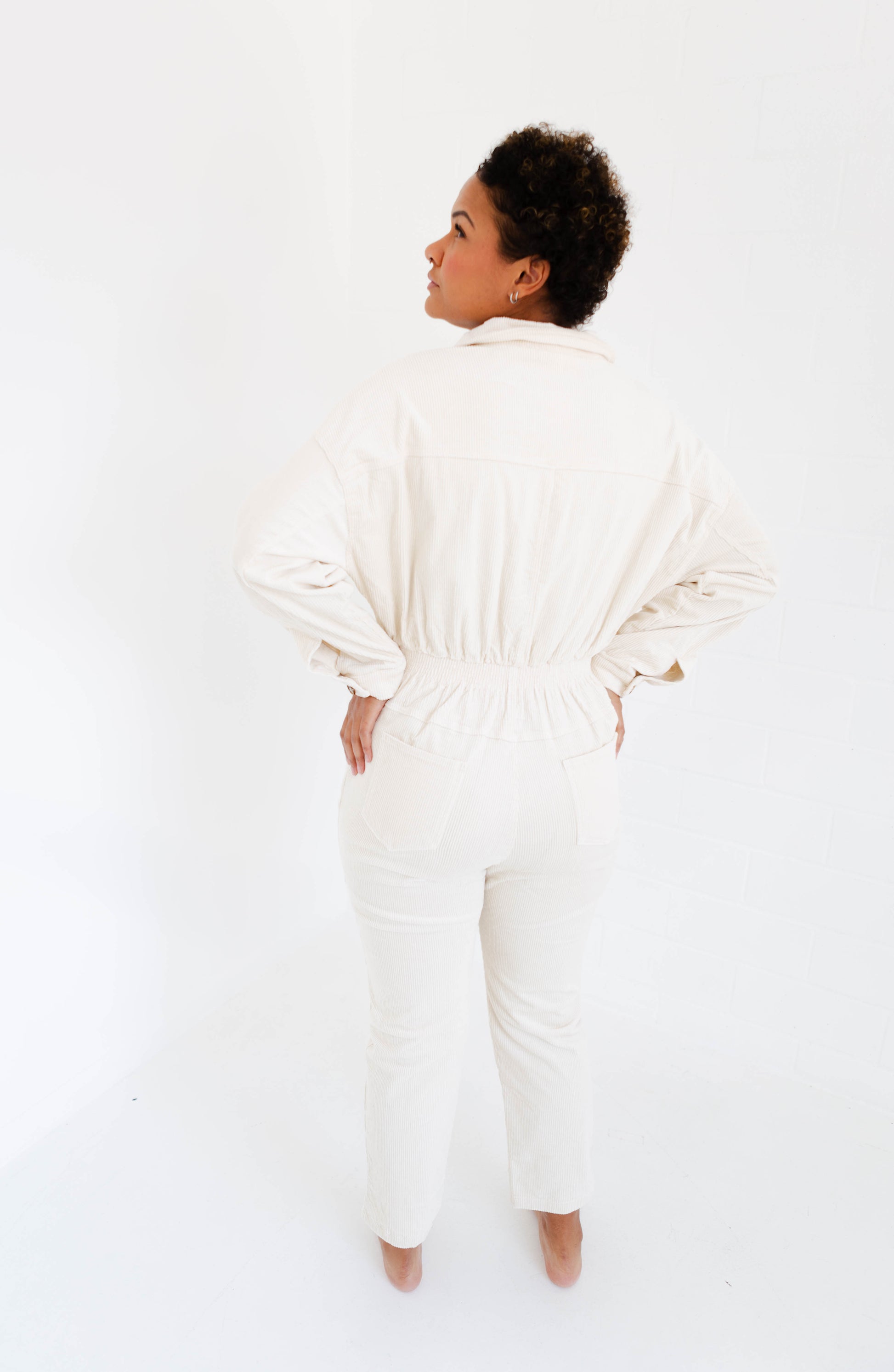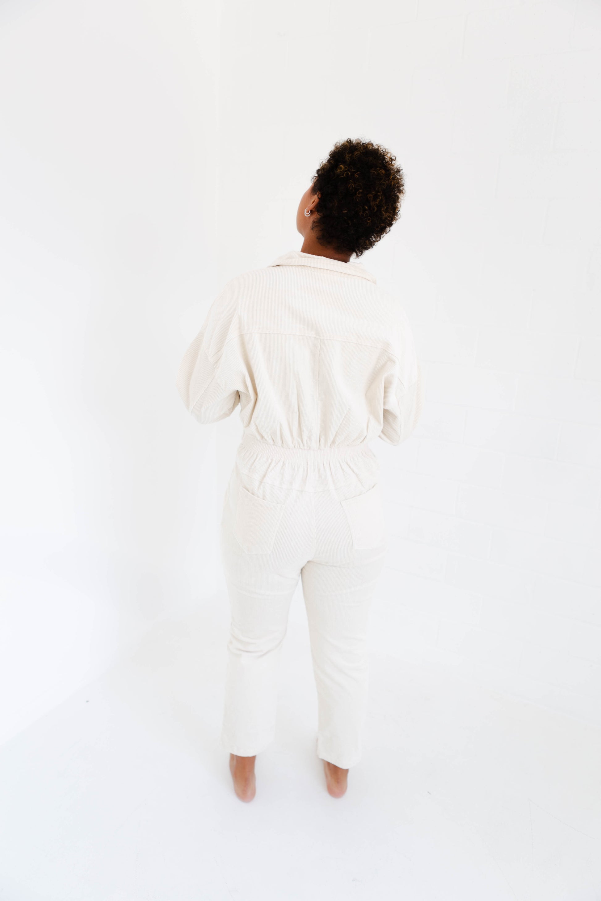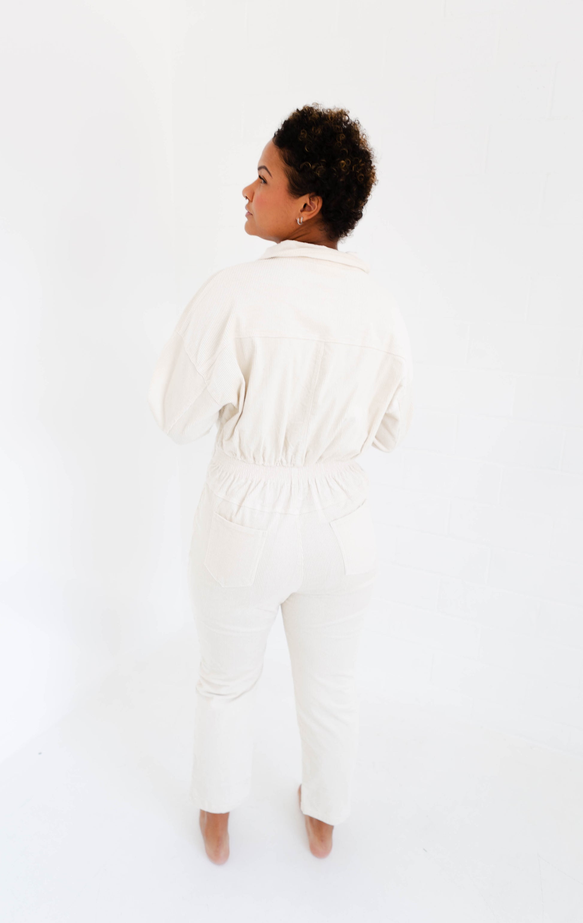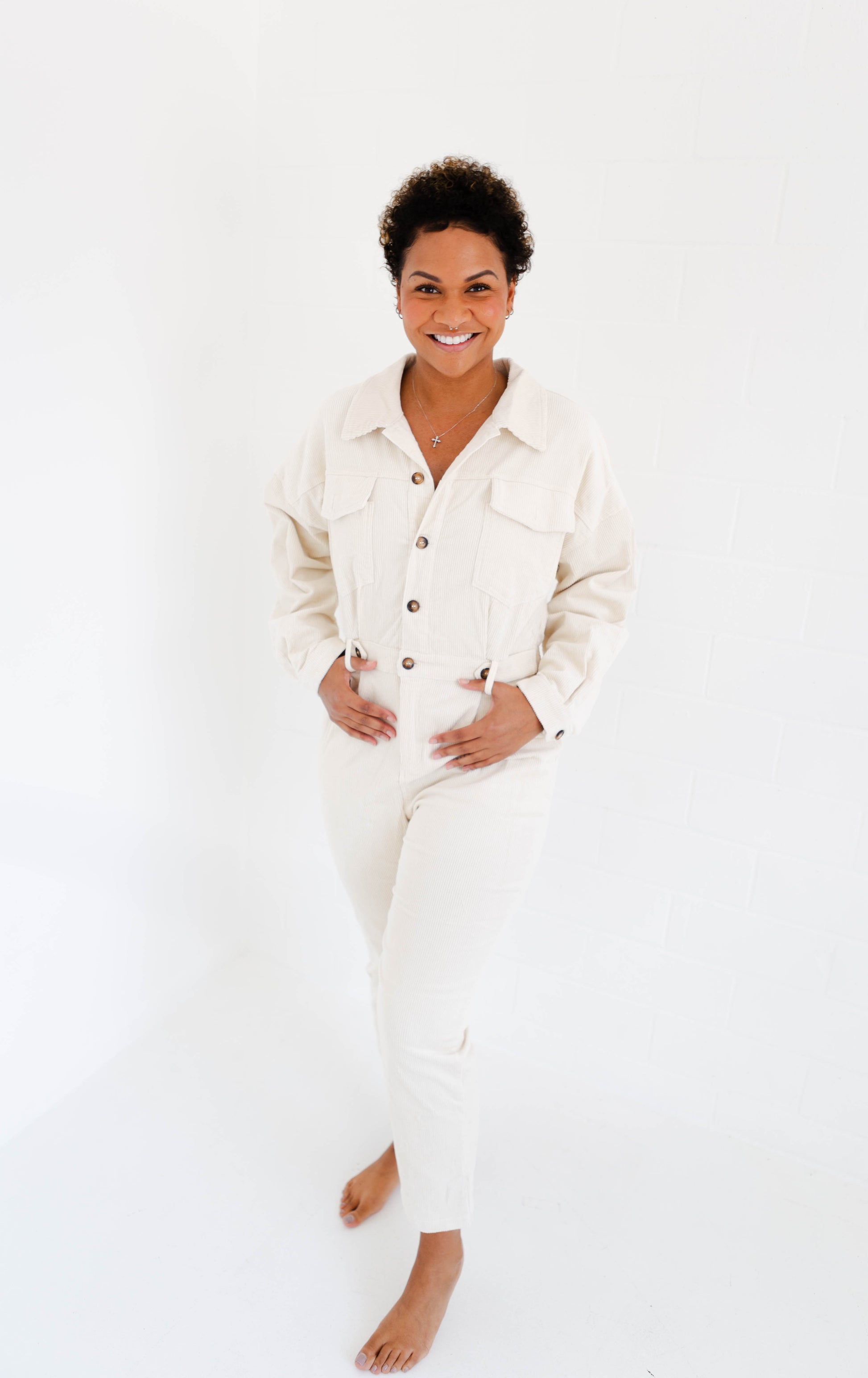 Get ready to jump into fashion with our Cream Utility Jumpsuit! With a button-up design, tapered legs, and pockets for convenience, this versatile jumpsuit also features an elastic belt in the back for a comfortable fit. Perfect for any occasion, this jumpsuit is a must-have addition to your wardrobe. Natalia is 5'8" wearing the medium.