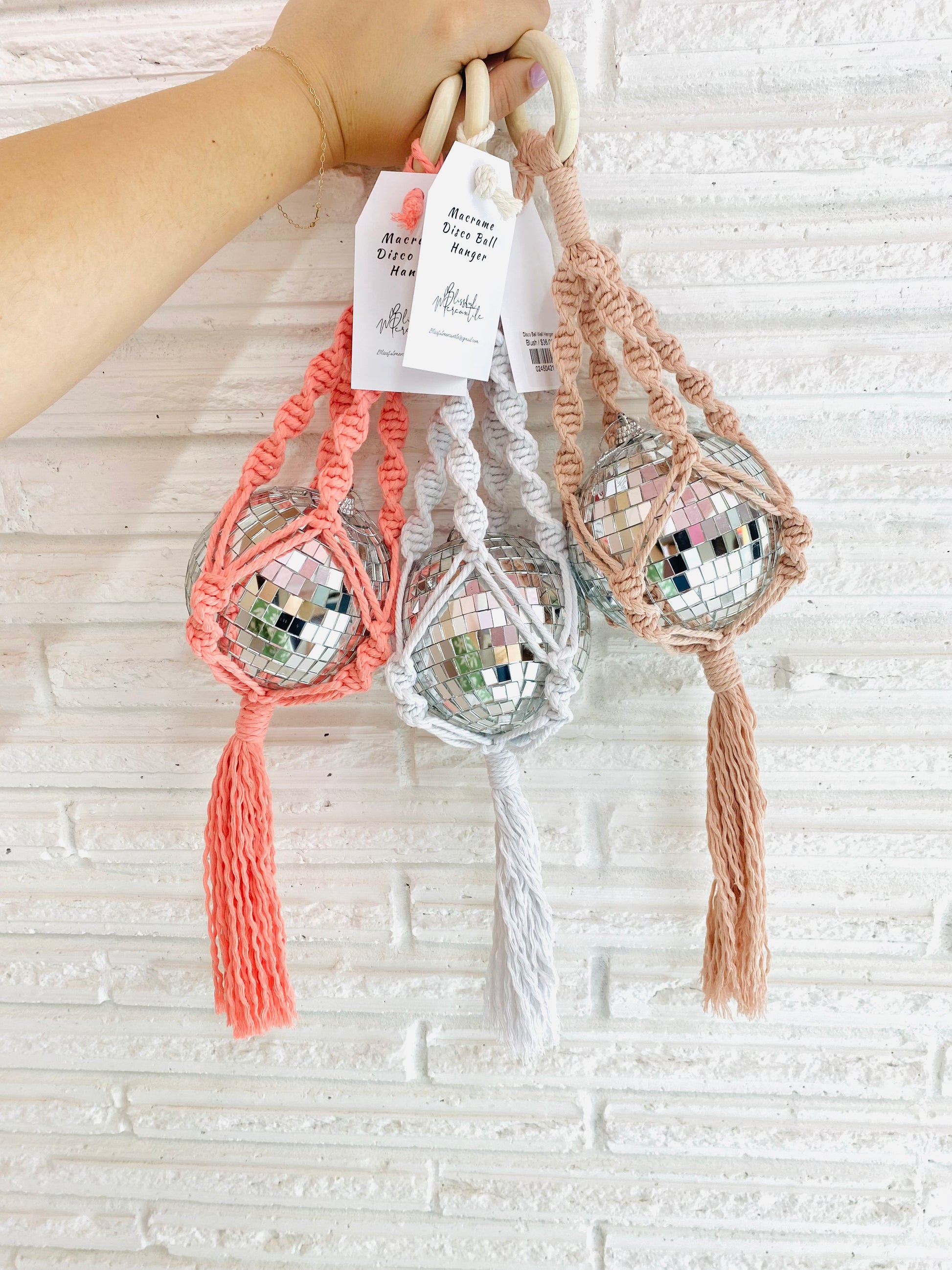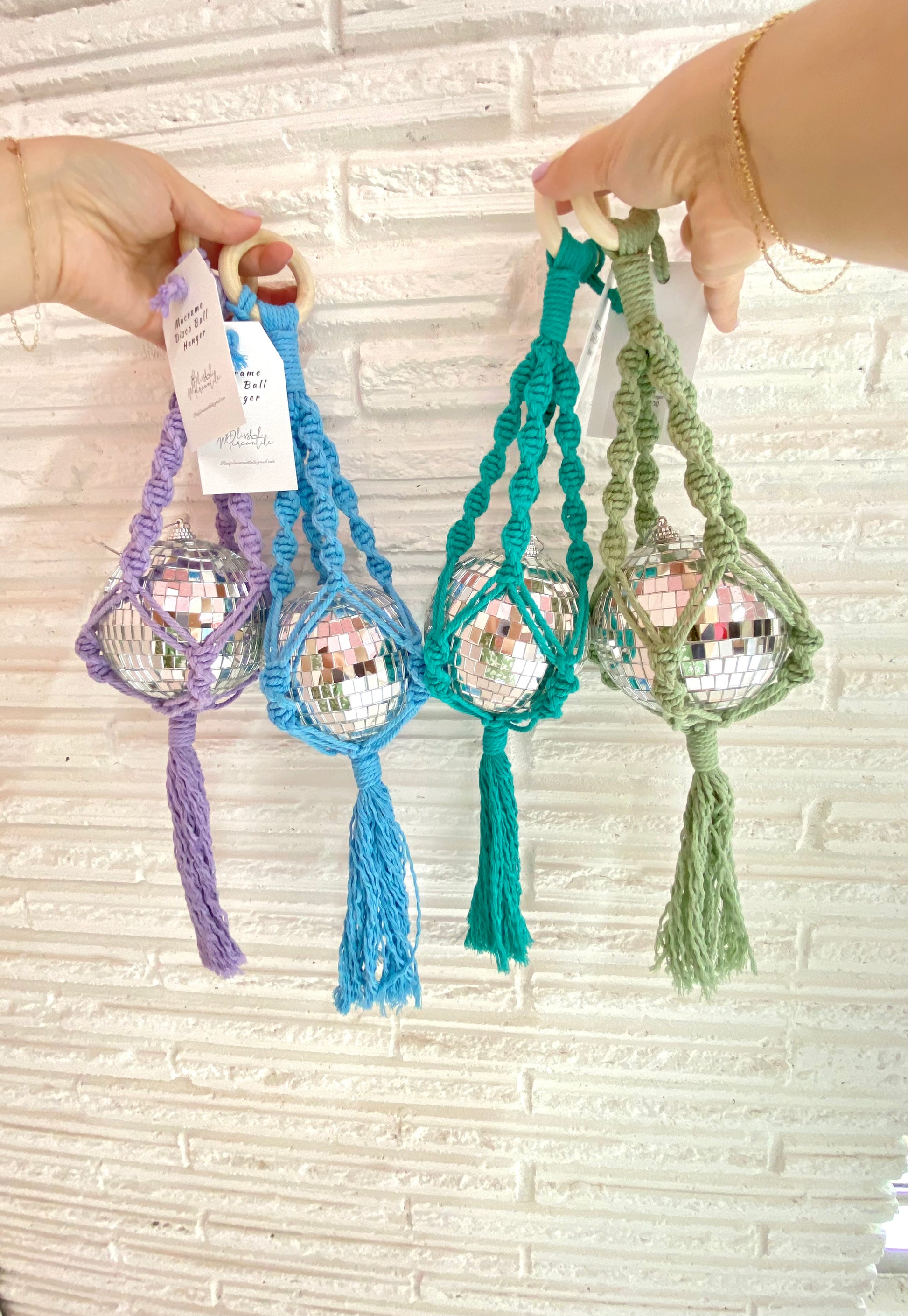 Add some happy to your kitchen, bed room, bathroom or office with these vibrant disco ball wall hangers. They are so bright and fun. They are handcrafted by a local artist, Michelle, who is a macrame magician. She can make all your macrame dreams come true.