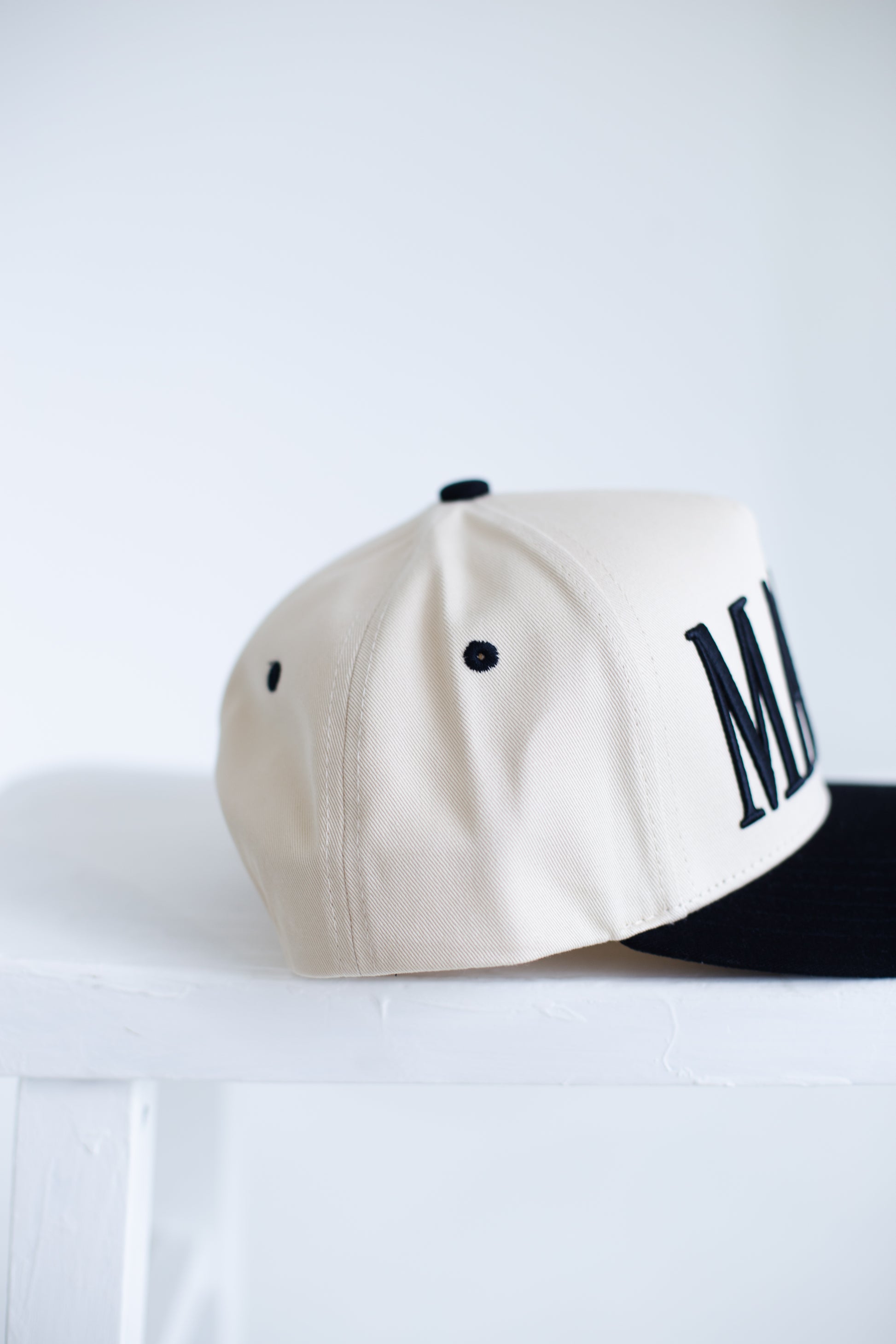 This black Mama Ball Cap features a convenient snap back closure, allowing for a customizable and comfortable fit. Perfect for everyday wear, this cap is a stylish and practical addition to any wardrobe.