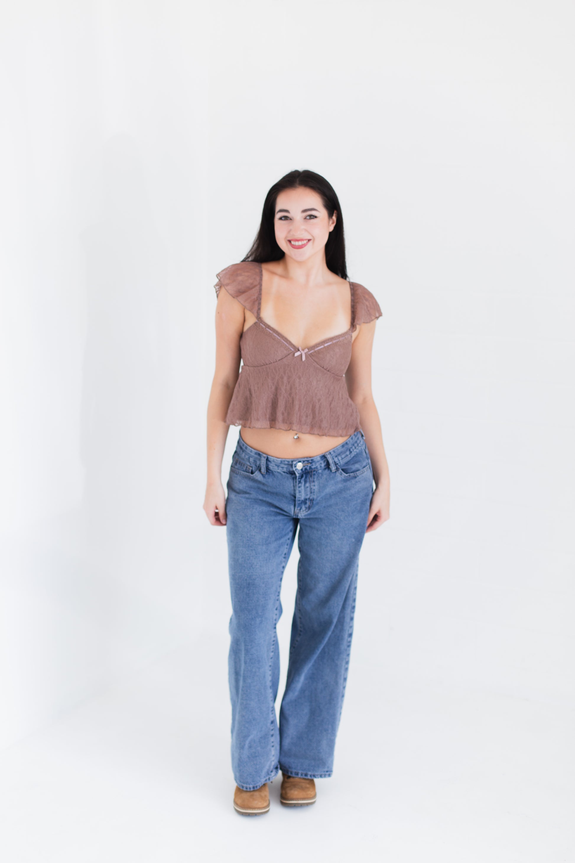 Get ready for fall fashion with this Mocha Lace Babydoll Cami Top! Its feminine silhouette pairs perfectly with low-rise denim, creating a casual and stylish look. Perfect for those cool autumn days.