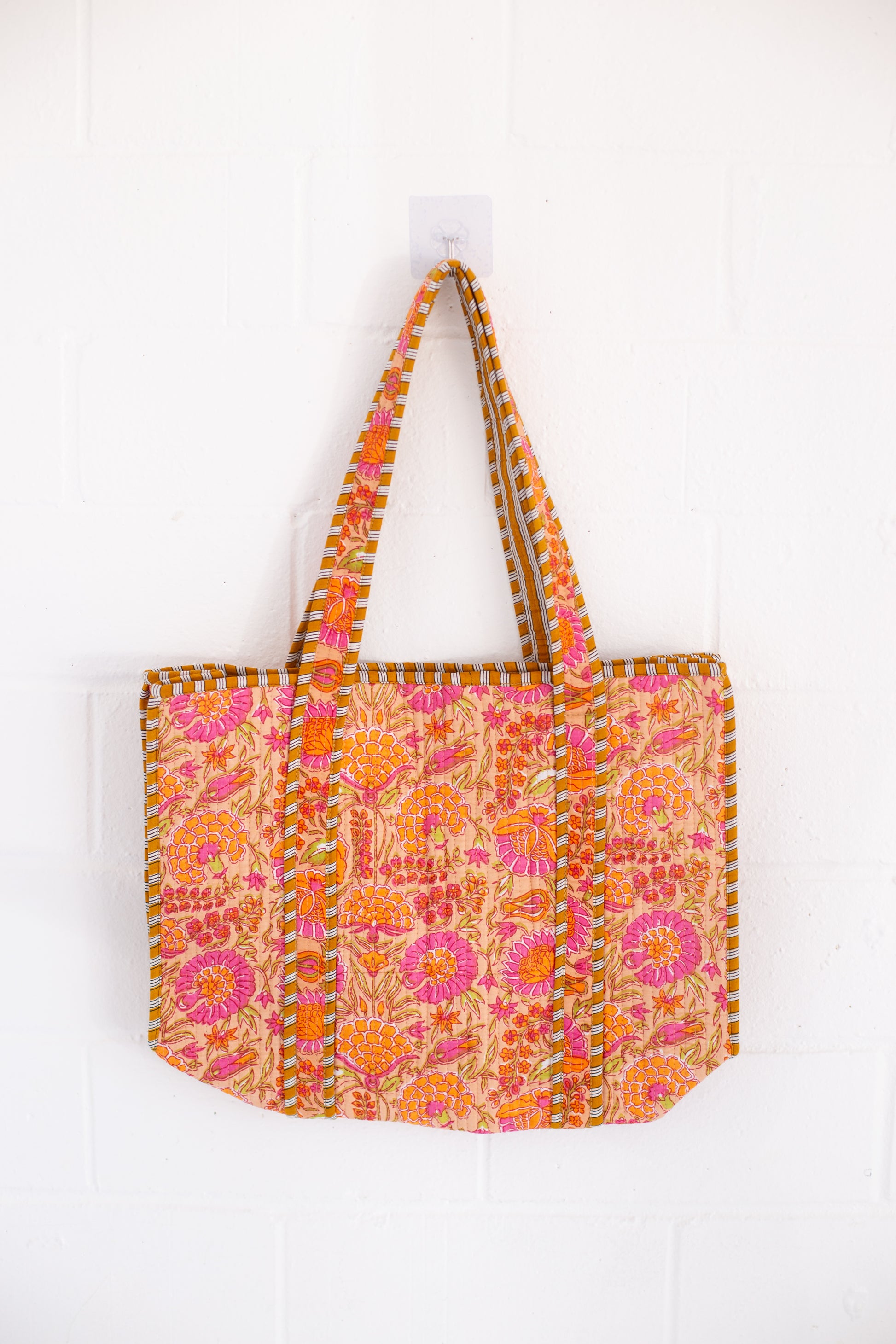 Add a pop of color to your everyday look with this charming Pink and Orange Floral Print Tote Bag. Made from soft, durable 100% cotton, this tote combines vibrant blooms with effortless functionality. Whether you're heading to the farmer's market, the beach, or just out and about, this lightweight bag is your perfect grab-and-go companion. 16" x 14” x 4"