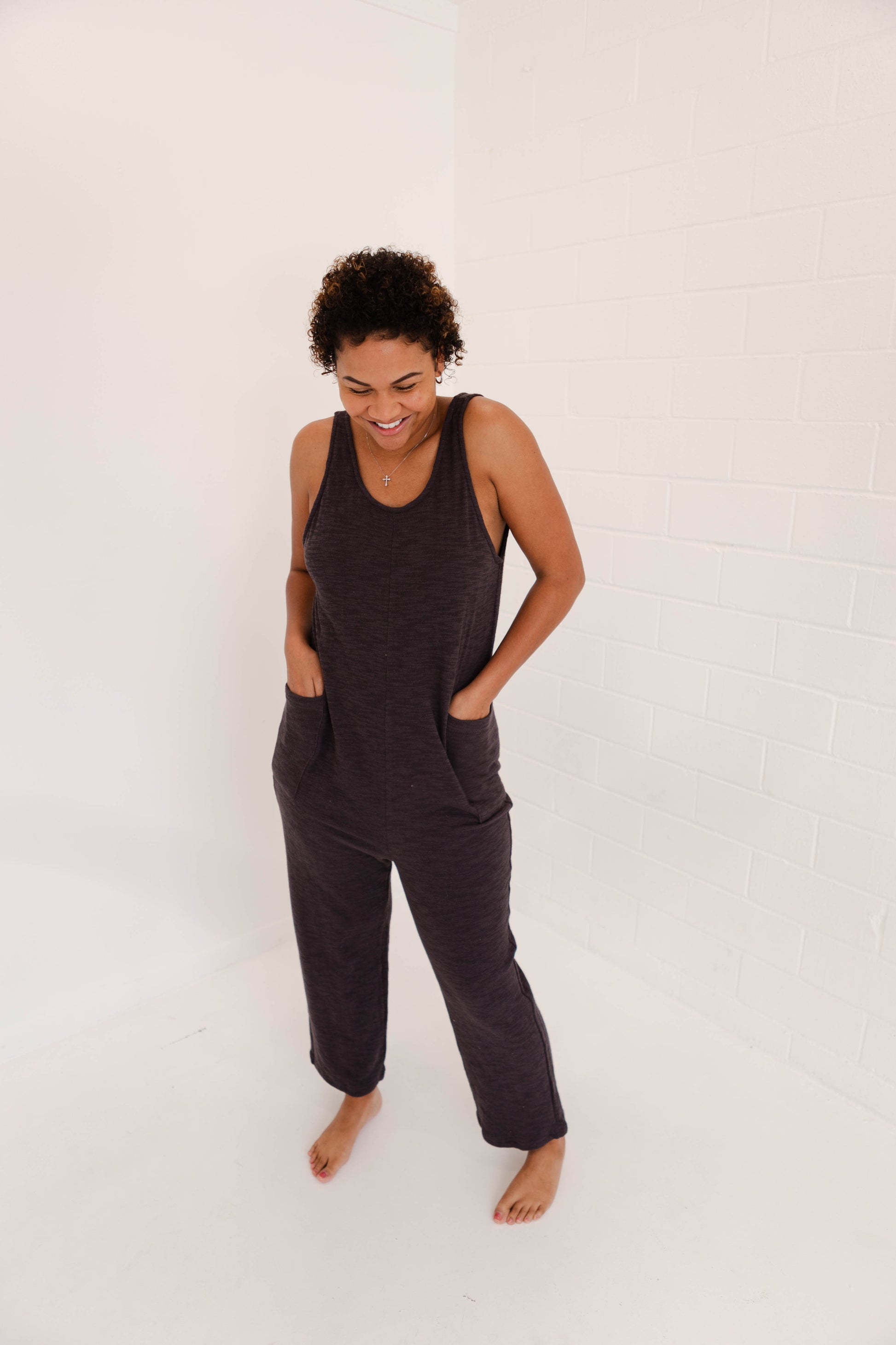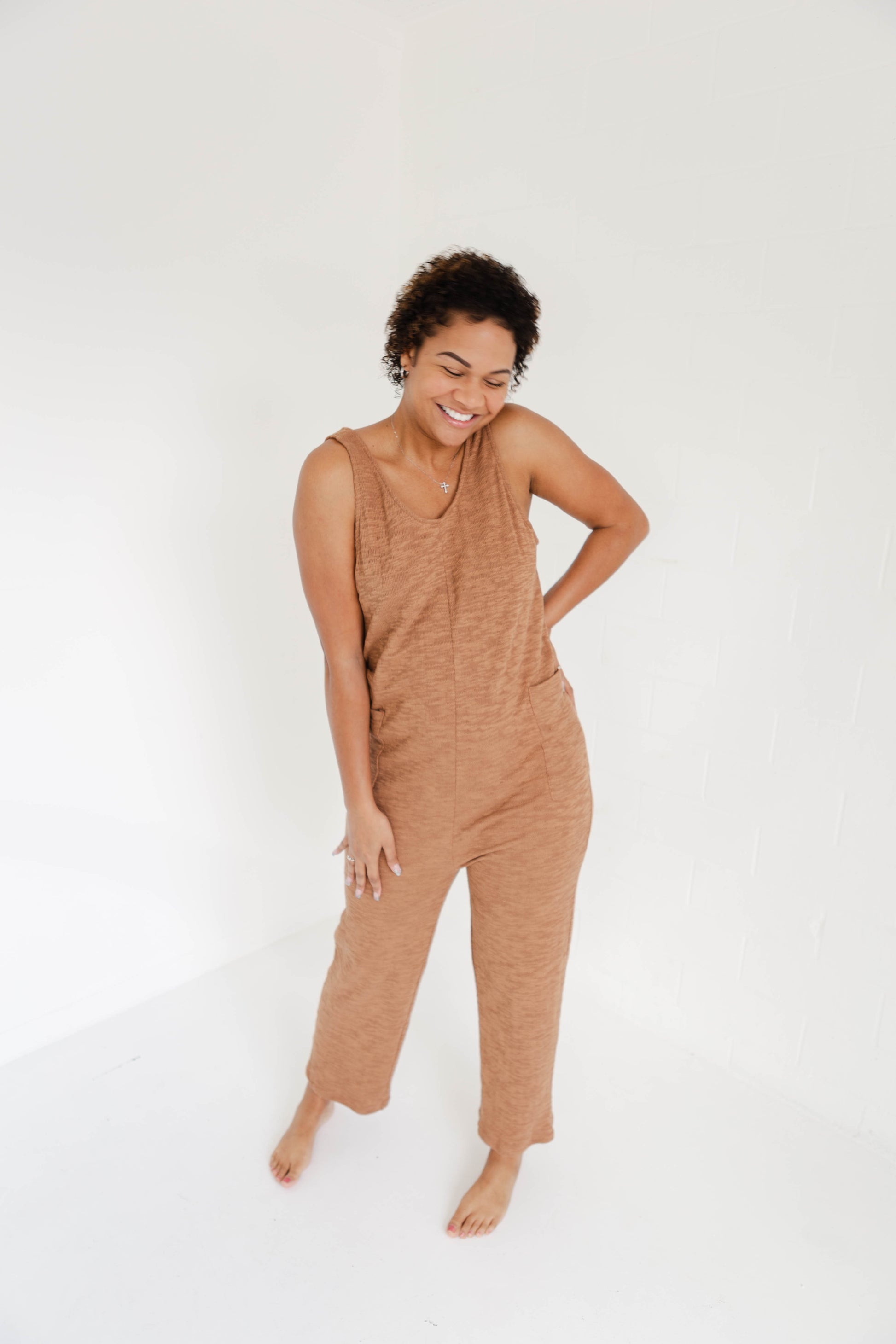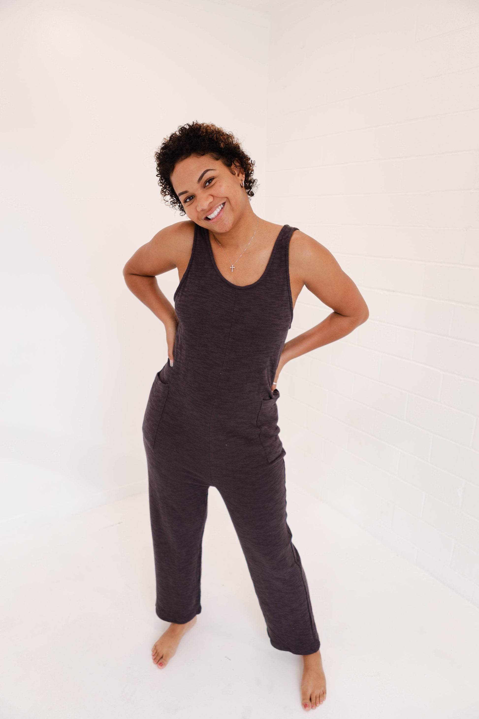 Don't be surprised if you never want to take off our cozy cotton jumpsuit. With convenient pockets and a cute scoop back, it's the perfect throw on piece for any occasion. Plus, our customers suggest sizing down for the perfect fit! Now to choose which color?!
