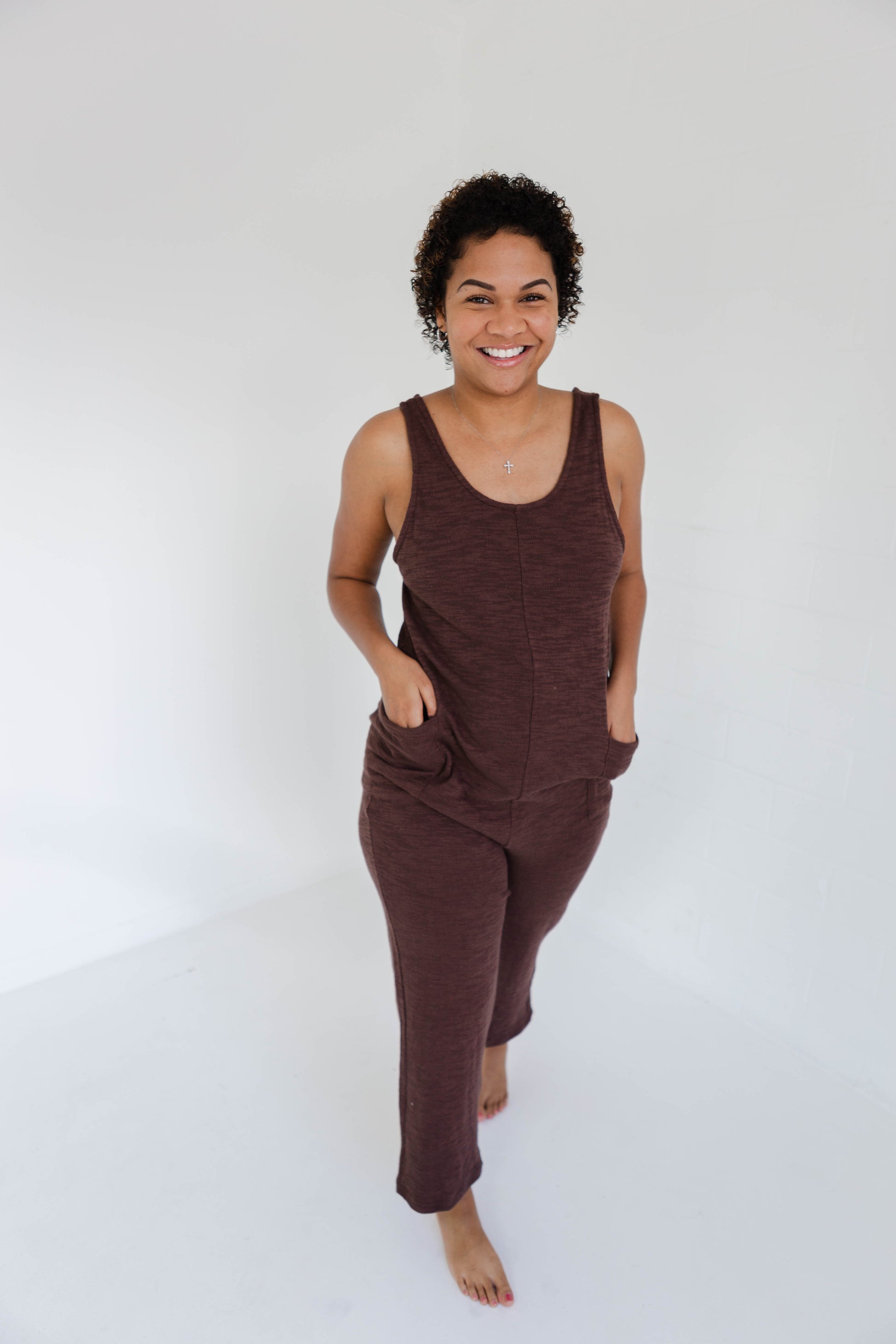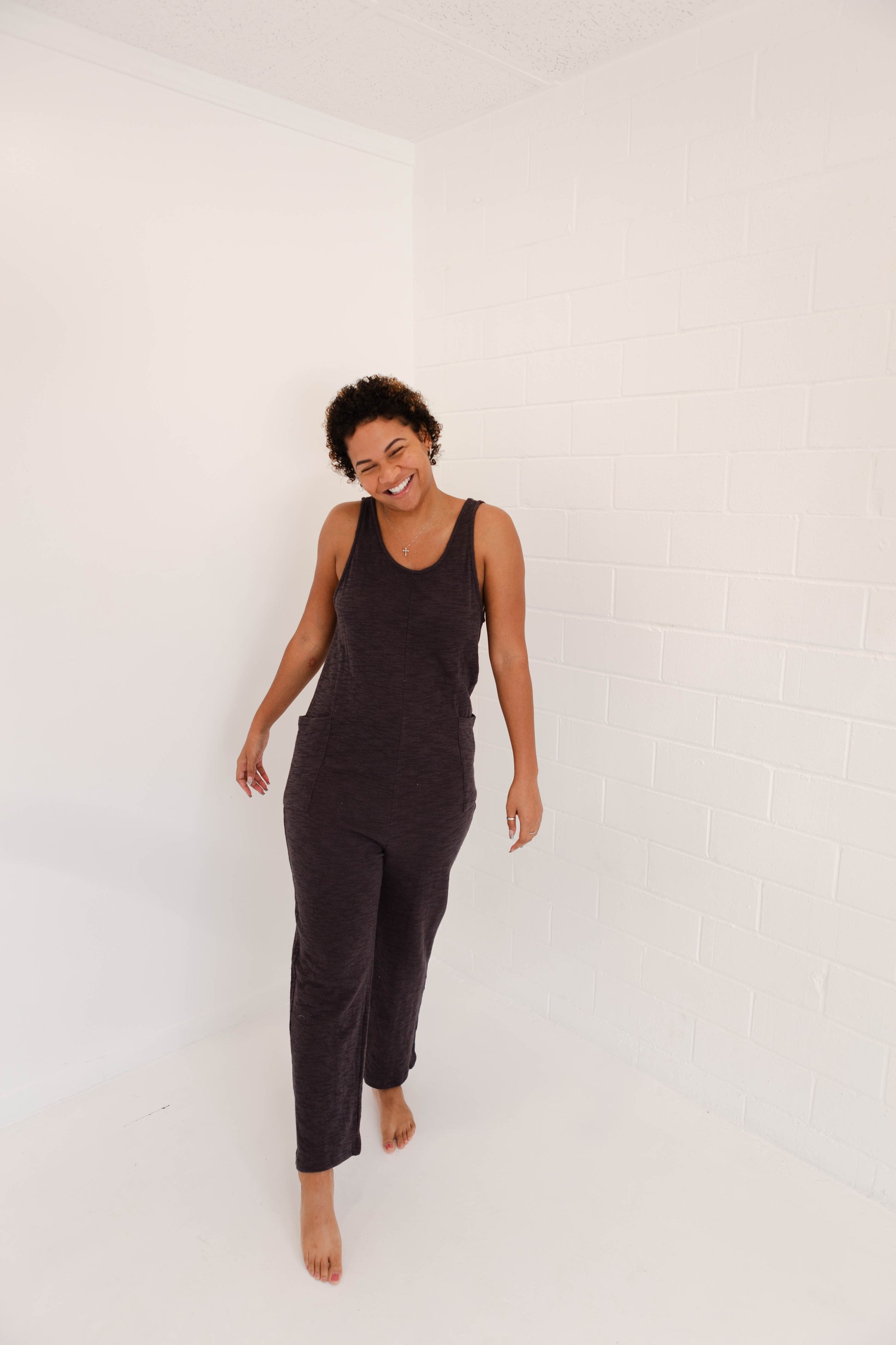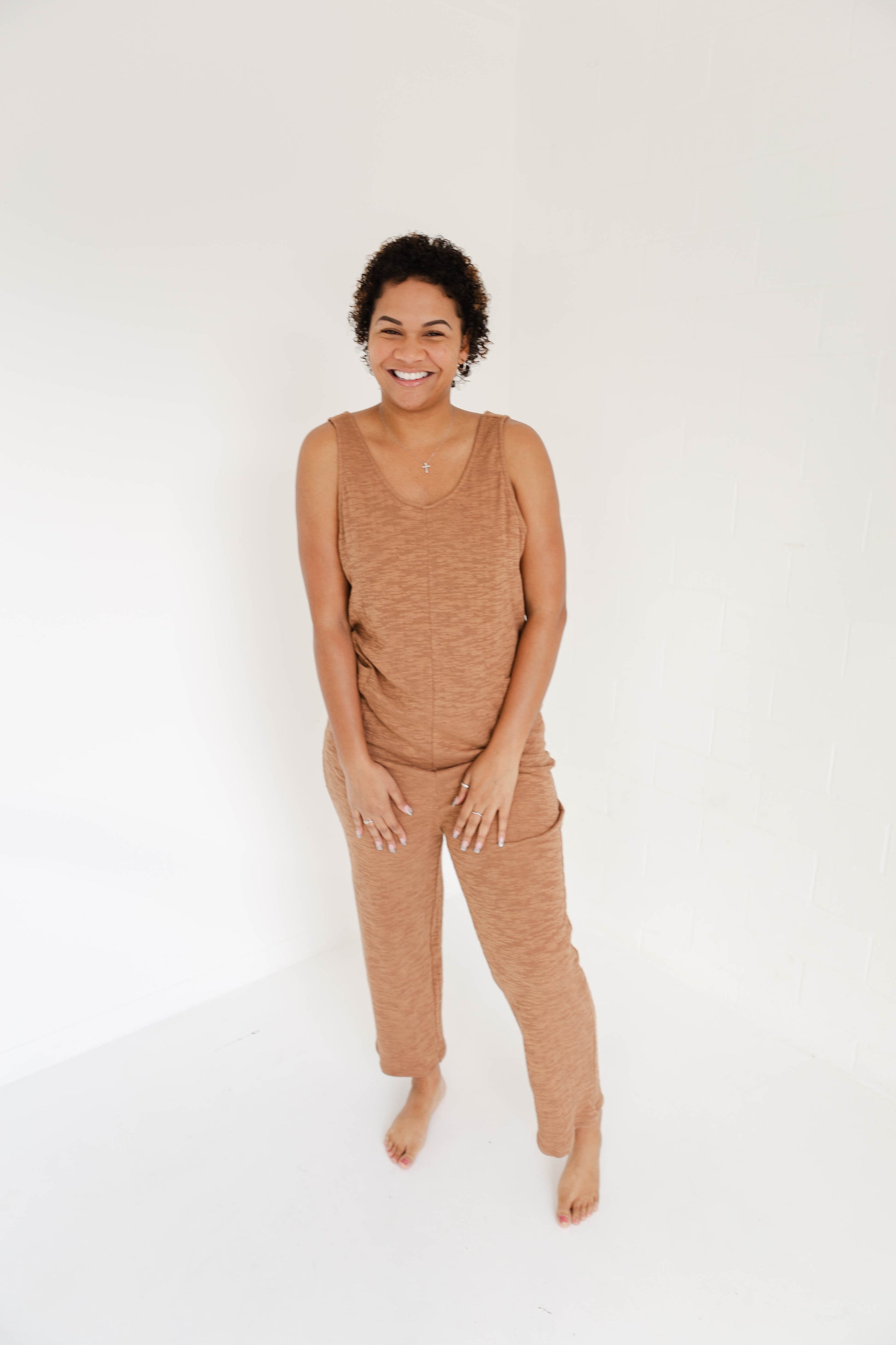 Don't be surprised if you never want to take off our cozy cotton jumpsuit. With convenient pockets and a cute scoop back, it's the perfect throw on piece for any occasion. Plus, our customers suggest sizing down for the perfect fit! Now to choose which color?!