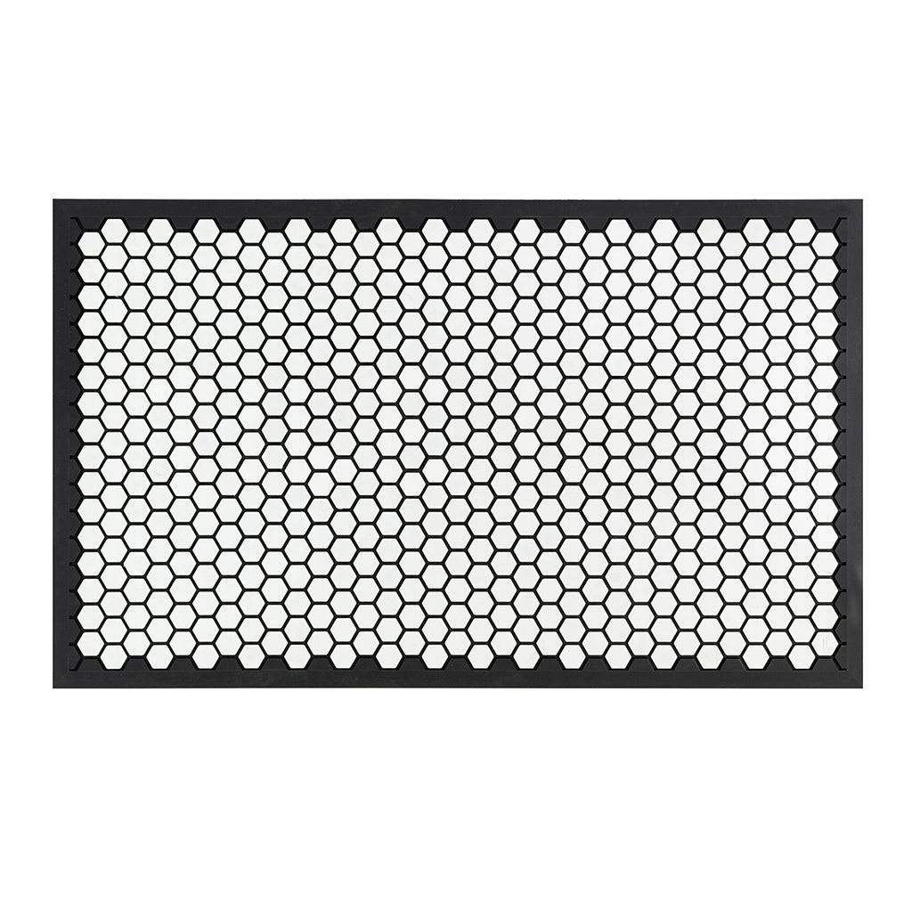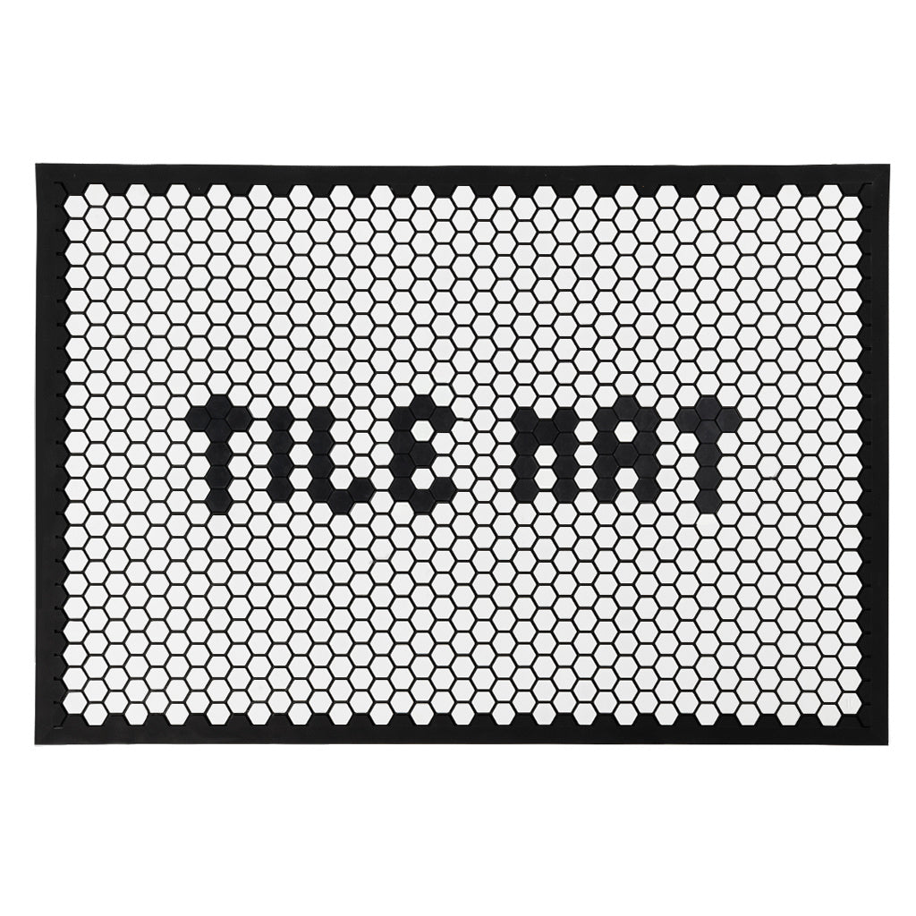 Tile Mat is an all-purpose mat that’s functional, beautiful, and — most importantly — customizable. Its timeless, vintage-inspired hexagon tile design and removable caps can be used to create endless patterns, designs, and words. Each Tile Mat - Large comes with 200 black tiles for customization. Dimensions 24" l x 36" w x 0.3" h Weight 8 lb